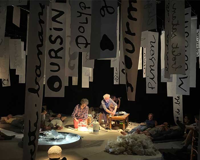Dès l’origine de leurs activités spectaculaires, les membres du Groupe n+1 ont naturellement été amenés à partager leurs interrogations et leurs outils de création avec le public le plus large. Il était en effet nécessaire de savoir ce qu’une classe de seconde entendait par le mot « chose » ou la manière dont un élève de quatrième imaginait l’existence du signe égal dans la vie de tous les jours. Ce lien s’est renforcé à mesure que la matière des spectacles se fabriquait toujours davantage lors de ces rencontres. Dans les divers ateliers qui ont accompagné chaque création, du t de n-1 au Feu de l’action, les n+1 ont proposé aux participantes d’expérimenter leurs méthodes d’invention et de fabrication, et en retour, ils y ont trouvé des idées (sous forme d’images, de textes, de gestes) assemblées plus tard sur la scène.