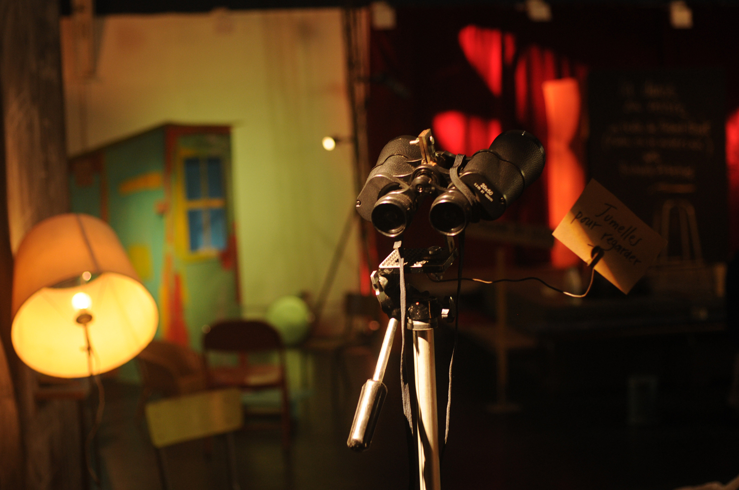 Bafouilles, conçu par Jean-Pierre Larroche, joue les prolongations jusqu’au 5 octobre au Théâtre du Fil de l’eau, à Pantin, au bord du canal de l’Ourcq. Pour trouver la salle, il suffit de suivre les flèches accrochées aux réverbères. Problème : il est probable que des passants prennent un malin plaisir à changer la direction desdites flèches. Pas grave, on finit quand même par s’y retrouver ; et ce brouillage de pistes est une excellente entrée en matière pour un spectacle où l’on entre et dont on sort par de multiples portes. Il est certes donné dans un dispositif à peu près normal – des gradins face à une scène. Mais telle une plante à rhizome, il prolifère aussi en dehors de la salle, ressurgit au bar ou dans le hall, sous forme d’éléments du décor amplifiées ou miniaturisés, d’expériences sonores, d’objets emblématiques – ainsi un mur entier de variations à partir d’une paire de jumelles. Oui, mais encore ? Disons que Jean-Pierre Larroche et ses complices poursuivent une exploration qui les pousse à remettre en cause les repères spatio-temporels les plus solides.