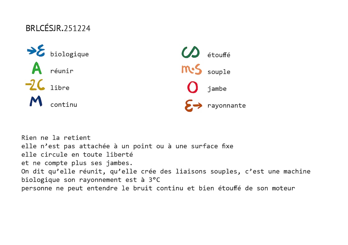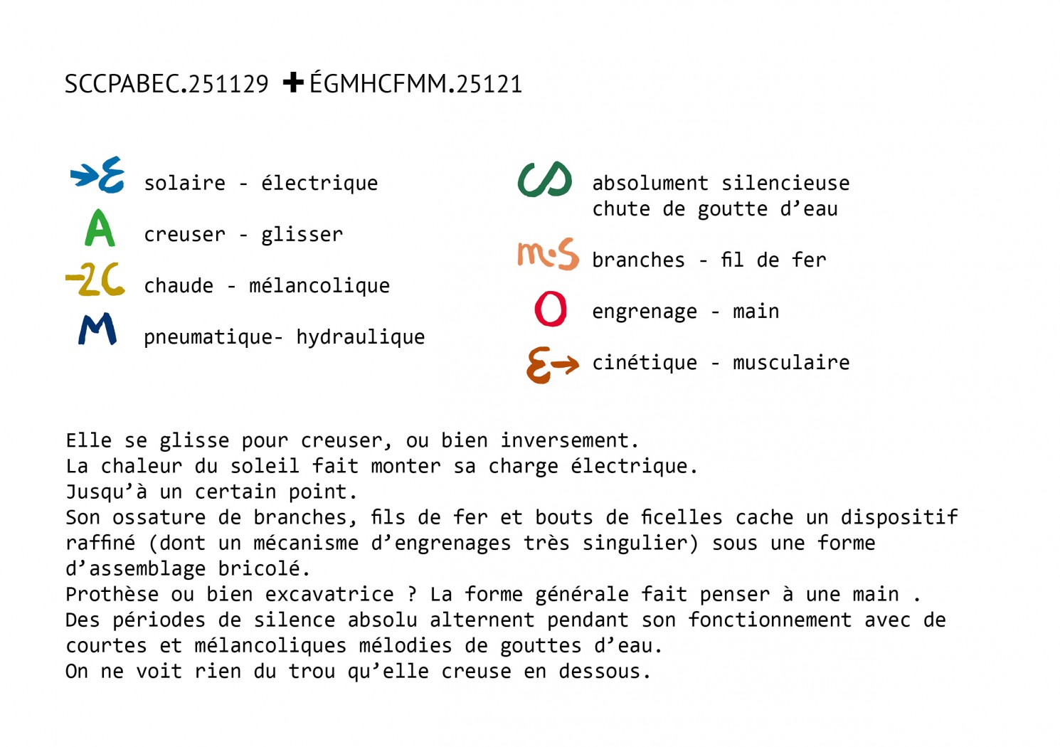 De manière générale, ça me fait penser à la rencontre entre une machinerie géante et une jungle => prendre les machines dans leur “environnement naturel”, des machines “à l’état sauvage” avec leurs techniques de camouflage (comme le caméléon ou le paresseux qui se déplace tellement lentement qu’on ne le voit pas), leurs découvertes par leur “cris” & leurs sons (la jungle est très bruyante, mais on n’y voit rien). Ça me fait presque penser à un “documentaire animalier” machinique. C’est une sensation forte d’être entouré de choses qui nous observent sans que nous les voyions. Là où nous pensions voir une feuille, c’est un essaim d’insectes.