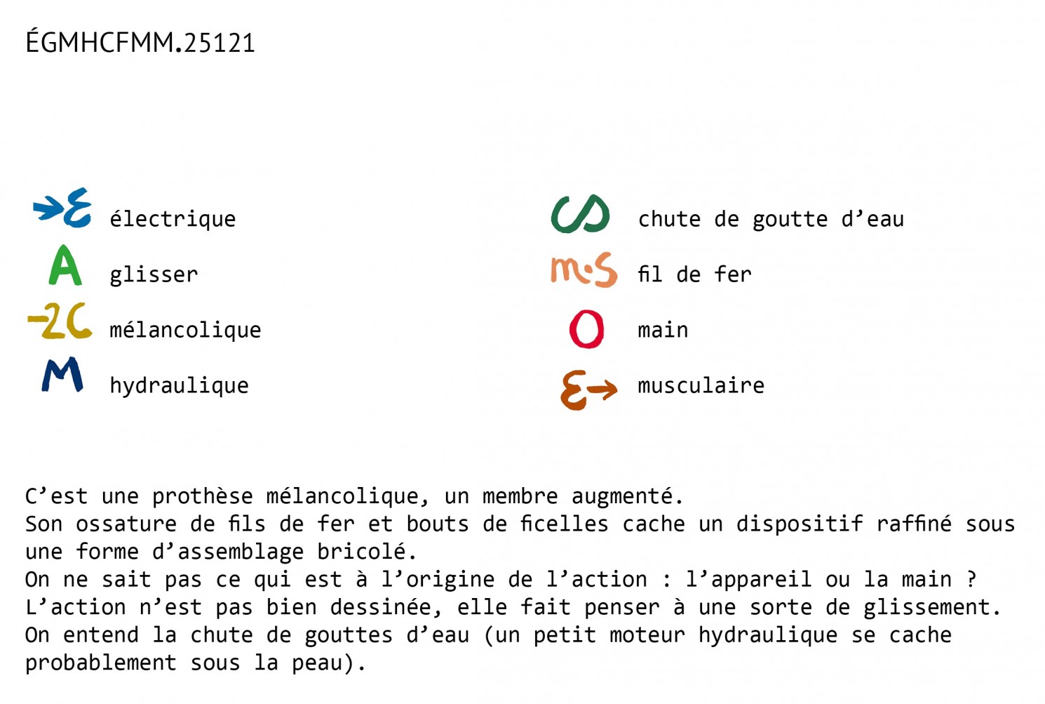 les Gestes des M. (tremblements, caresses, glissement, claudication, se relever, se déployer, s’écrouler, balancements, sauts…)