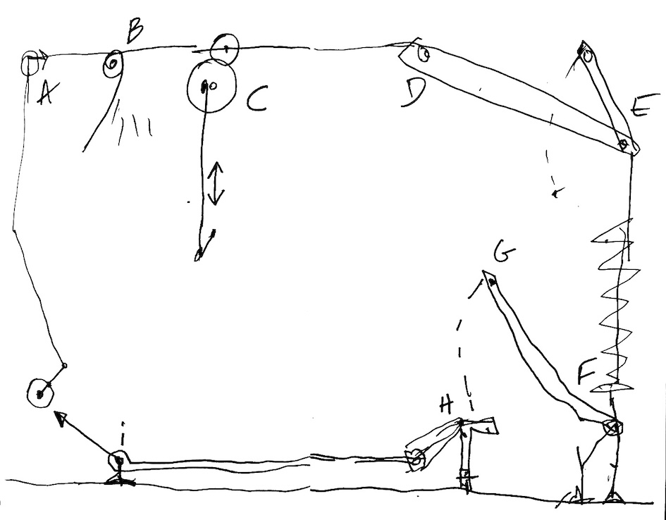 Tout l’actionnement de cette machinerie se fait depuis un point dont partent tous les fils. C’est l’arbre à cames de Machination. Pourquoi pas.