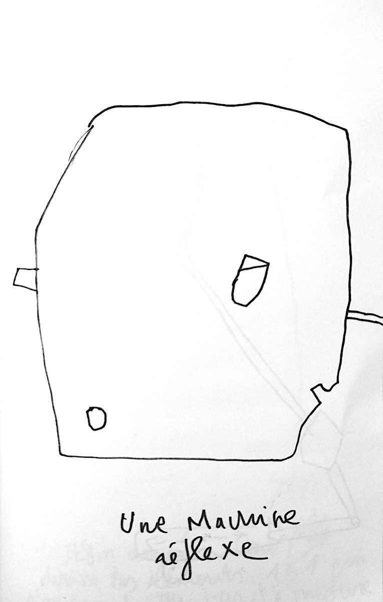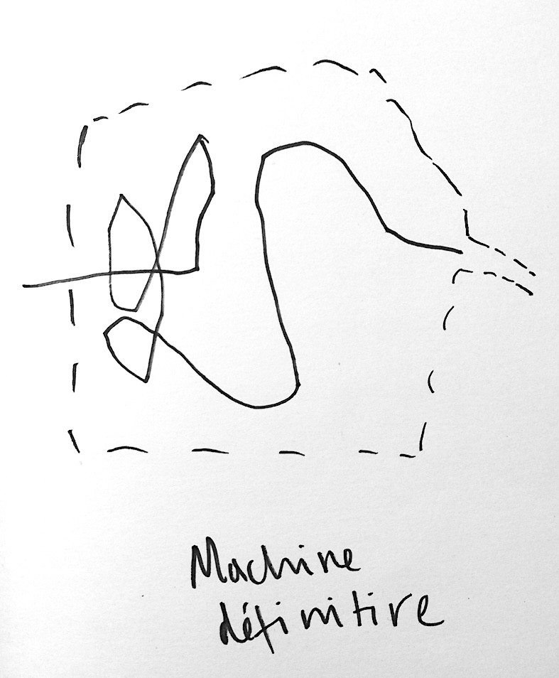 – Ce serait bien d’isoler 2 ou 3 “personnages” (la linotype, l’aspirateur, un autre?) et de leur inventer une histoire, un parcours, des questions qu’ils se posent. Ça peut être un jeu d’écriture entre nous pour commencer à tirer les fils de la suite.